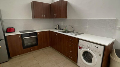 A 2-bedroom, 90 sqm, renovated and furnished apartment with a private garden and parking is available for rent.