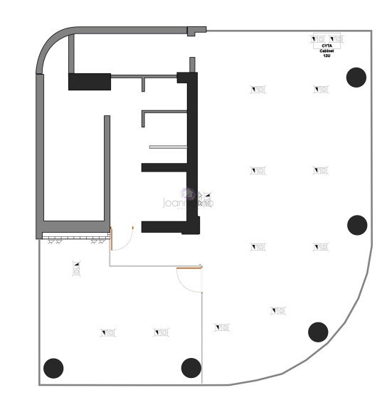 This unfurnished office features a private enclosed office, a dedicated server room, a small kitchenette, and two WCs, offering a functional layout suitable for a variety of business needs.