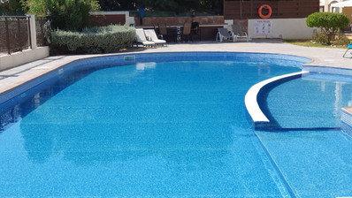 The complex includes a well-maintained communal swimming pool and a shared garden.