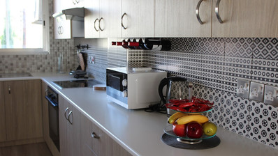 • Separate, fully equipped kitchen