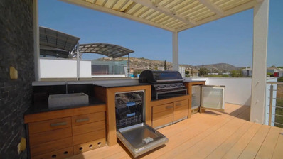 This luxury villa is located in a prestigious area of Limassol, between the Parklane and St Raphael hotels, nestled within a complex of just five villas. The property features a heated swimming pool and a garden with fruit trees. The house is equipped with diesel heating with temperature control on each floor, air conditioning in all rooms, kitchen appliances, a refrigerator, a washing machine, and televisions. An open rooftop veranda features a barbecue and a seating area with a sea view. Covered parking with automatic gates accommodates two cars.
